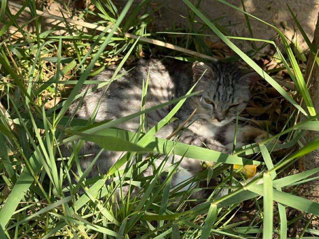 Es war August 2024, als Kareema einen Beitrag über ein gelähmtes Kätzchen sah, das irgendwo an einer viel befahrenen Straße in Kairo lag. Das Kätzchen war angeblich mit einem Stock geschlagen worden. Glücklicherweise war das junge Kätzchen nicht gelähmt. Dank guter Ernährung, Vitaminen und Nahrungsergänzungsmitteln gewann es an Kraft und konnte immer mehr laufen. Es läuft jetzt einigermaßen gut und humpelt nur leicht auf einem Hinterbein. Sein erster Sponsor nannte diesen hübschen Kerl Caramel.